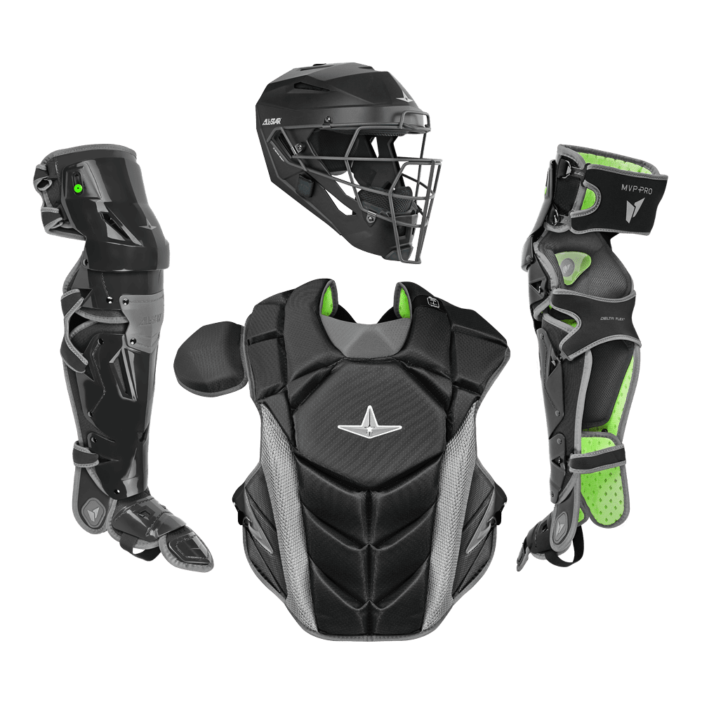 The game is changing. Catchers must adapt and so should their gear. Pitchers are throwing harder with more movement. The wild pitches are getting wilder (not to mention the backswing). Catcher equipment must provide confidence to react without question or distraction. Unrestrained, secure, and of course protected. The MVP-Pro catcher's set is All-Star's sign to the baseball world that we have entered a new era in catching.