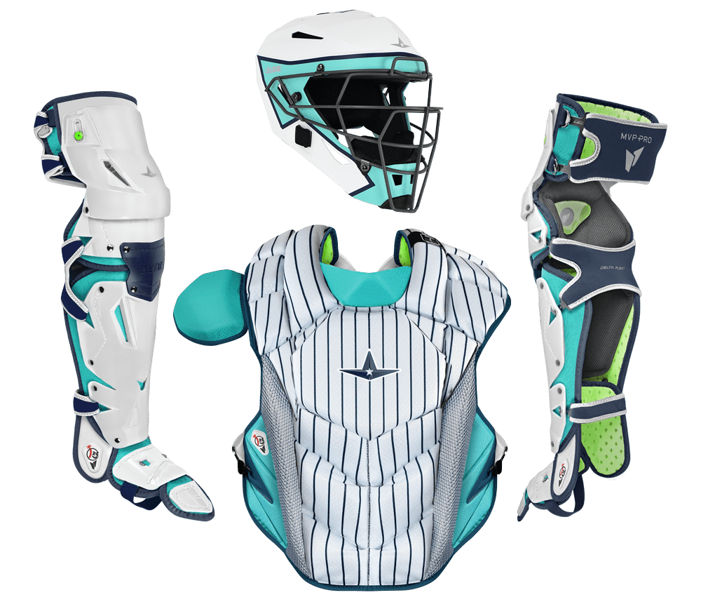 The game is changing. Catchers must adapt and so should their gear. Pitchers are throwing harder with more movement. The wild pitches are getting wilder (not to mention the backswing). Catcher equipment must provide confidence to react without question or distraction. Unrestrained, secure, and of course protected. The MVP-Pro catcher's set is All-Star's sign to the baseball world that we have entered a new era in catching.