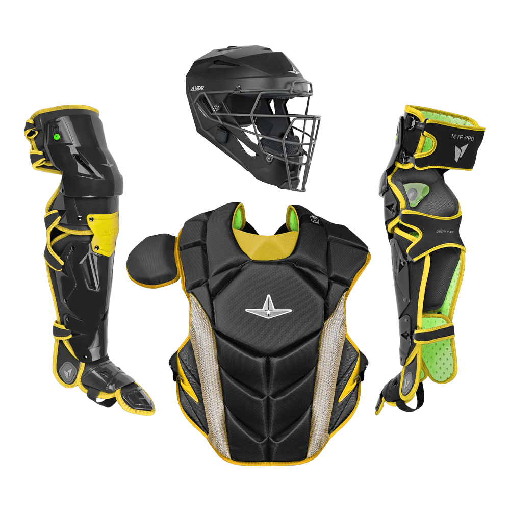 The game is changing. Catchers must adapt and so should their gear. Pitchers are throwing harder with more movement. The wild pitches are getting wilder (not to mention the backswing). Catcher equipment must provide confidence to react without question or distraction. Unrestrained, secure, and of course protected. The MVP-Pro catcher's set is All-Star's sign to the baseball world that we have entered a new era in catching.