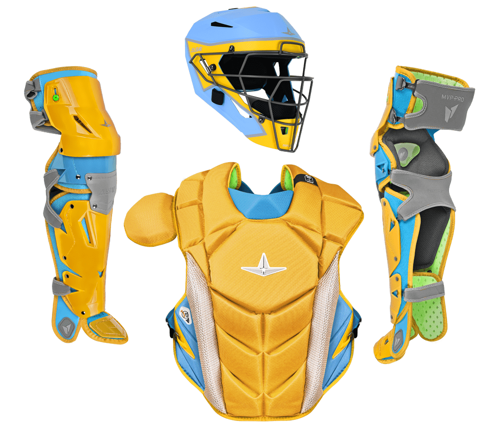 The game is changing. Catchers must adapt and so should their gear. Pitchers are throwing harder with more movement. The wild pitches are getting wilder (not to mention the backswing). Catcher equipment must provide confidence to react without question or distraction. Unrestrained, secure, and of course protected. The MVP-Pro catcher's set is All-Star's sign to the baseball world that we have entered a new era in catching.