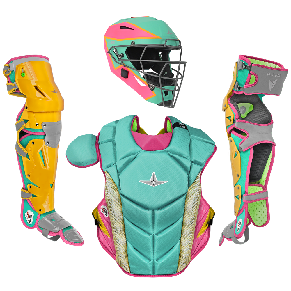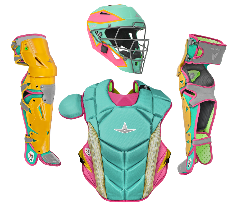 The game is changing. Catchers must adapt and so should their gear. Pitchers are throwing harder with more movement. The wild pitches are getting wilder (not to mention the backswing). Catcher equipment must provide confidence to react without question or distraction. Unrestrained, secure, and of course protected. The MVP-Pro catcher's set is All-Star's sign to the baseball world that we have entered a new era in catching.