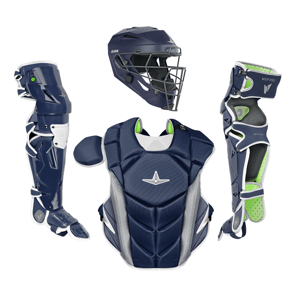 The game is changing. Catchers must adapt and so should their gear. Pitchers are throwing harder with more movement. The wild pitches are getting wilder (not to mention the backswing). Catcher equipment must provide confidence to react without question or distraction. Unrestrained, secure, and of course protected. The MVP-Pro catcher's set is All-Star's sign to the baseball world that we have entered a new era in catching.