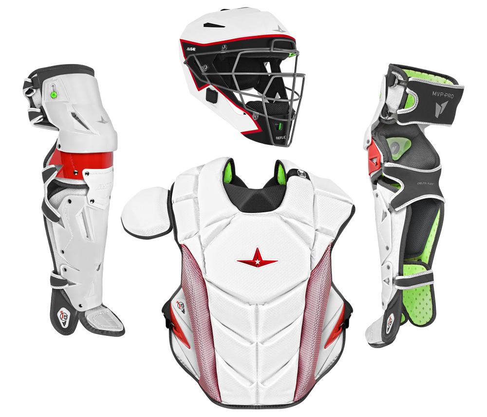The game is changing. Catchers must adapt and so should their gear. Pitchers are throwing harder with more movement. The wild pitches are getting wilder (not to mention the backswing). Catcher equipment must provide confidence to react without question or distraction. Unrestrained, secure, and of course protected. The MVP-Pro catcher's set is All-Star's sign to the baseball world that we have entered a new era in catching.