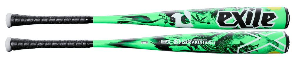 Slash hits to all fields with the 2026 DeMarini Exile Samurai -3 BBCOR Baseball Bat, modified with a neon green and black X14 Alloy Barrel for elite high school and college players. The updated barrel graphic showcases a Japanese Samurai, building a bat worthy of the warrior class. Exile offers a huge profile and distributes weight more evenly across the stiff design for improved plate coverage swing. An integrated handle taper rests under the grip for improved feel and comfort, while the Damplify knob reduces vibration and hand sting. Optimized for elite swing speed and powerful results, Exile Samurai is unwavering.