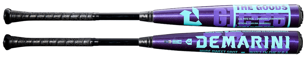 Purple Power. The 2026 DeMarini The Goods Royal Purple brings a new look to the heaviest swinging hybrid bat in DeMarini’s BBCOR family. A high-gloss Purple & Teal X14 Alloy Barrel is fit for power-hitting royalty in high school and college baseball. The Goods features the same massive barrel profile that players love to square up extra-base hits at the dish. New for the 2026 model, an Upgraded Direct Connection offers a redesigned interface between the barrel and revamped 1375 Composite handle for improved durability and a stiff feel without sacrificing comfort. The Goods Royal Purple empowers elite hitters to claim the throne.