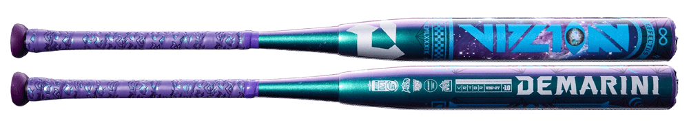 Sharpen your swing and deliver clutch hits with the 2027 DeMarini Vizion (-10), a one-piece fastpitch softball bat built for elite hitters with its end-to-end Vertebrae construction and Dark Matter Composite Gapped Wall Barrel. Vizion’s outer barrel wall and inner Vertebrae wall are separated by DeMarini’s largest and longest air gap, creating a massive sweet spot that converts your swing speed into clutch hits. The softer Damplify Knob material and an integrated, removable handle taper combine for a comfortable grip. The Anomaly End Cap helps maintain a balanced swing weight to produce loud, barreled-up contact. Vizion, with its piercing iridescent appearance and responsive, powerful construction, brings your best swing into focus.