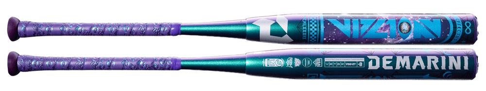 Transform powerful swings into clutch hits with the 2027 DeMarini Vizion (-8), a one-piece fastpitch softball bat built for elite hitters with its end-to-end Vertebrae construction and Dark Matter Composite Gapped Wall Barrel. Vizion’s outer barrel wall and inner Vertebrae wall are separated by DeMarini’s largest and longest air gap, creating a massive sweet spot that converts your swing speed into extra-base hits. The softer Damplify Knob material and an integrated, removable handle taper combine for a comfortable grip. The Anomaly End Cap helps maintain a balanced swing weight to produce more loud, barreled-up contact. Vizion, with its piercing iridescent appearance and responsive, powerful construction, brings your best swing into focus.