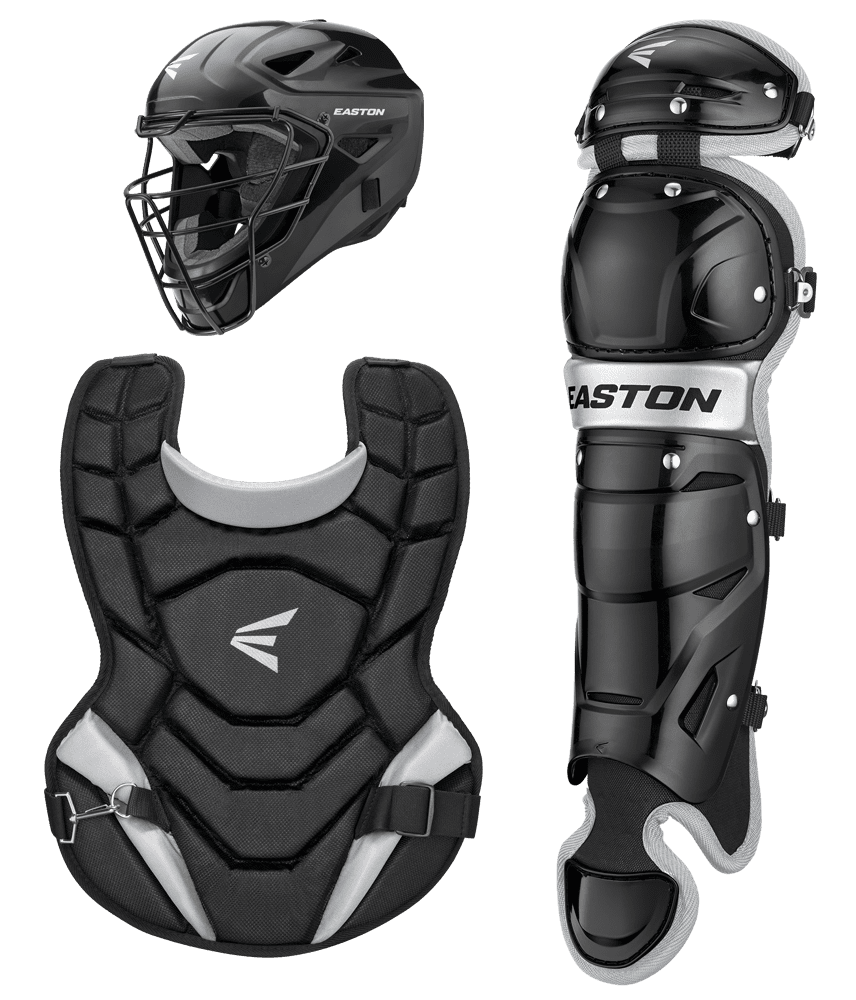 Easton's second-generation Black Magic 2.0 box set is perfect for the youth or beginner catcher. This set includes a hockey-style ABS thermoplastic shell helmet with a steel cage and dual-density foam, a chest protector with foam padding for protection, and leg guards with double-knee protection.