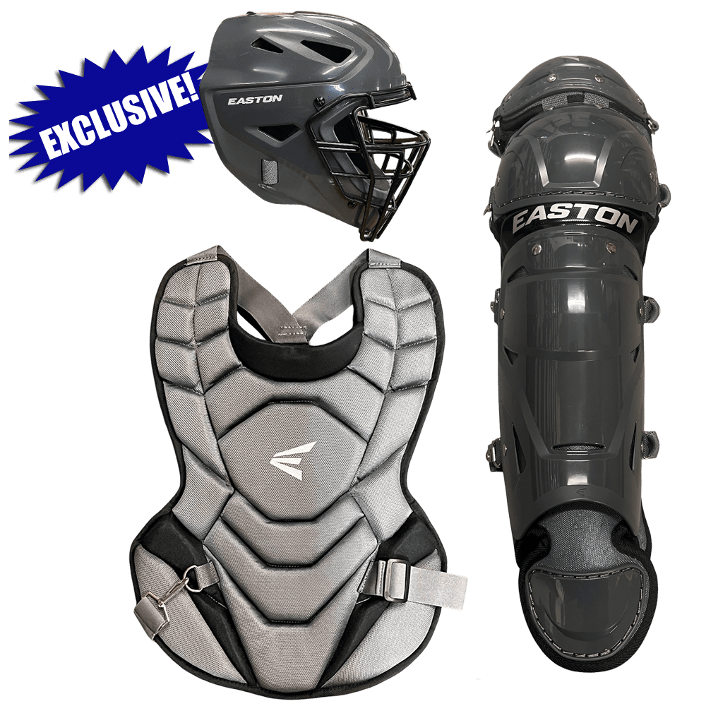 Easton's second-generation Black Magic 2.0 box set is perfect for the youth or beginner catcher. This set includes a hockey-style ABS thermoplastic shell helmet with a steel cage and dual-density foam, a chest protector with foam padding for protection, and leg guards with double-knee protection.