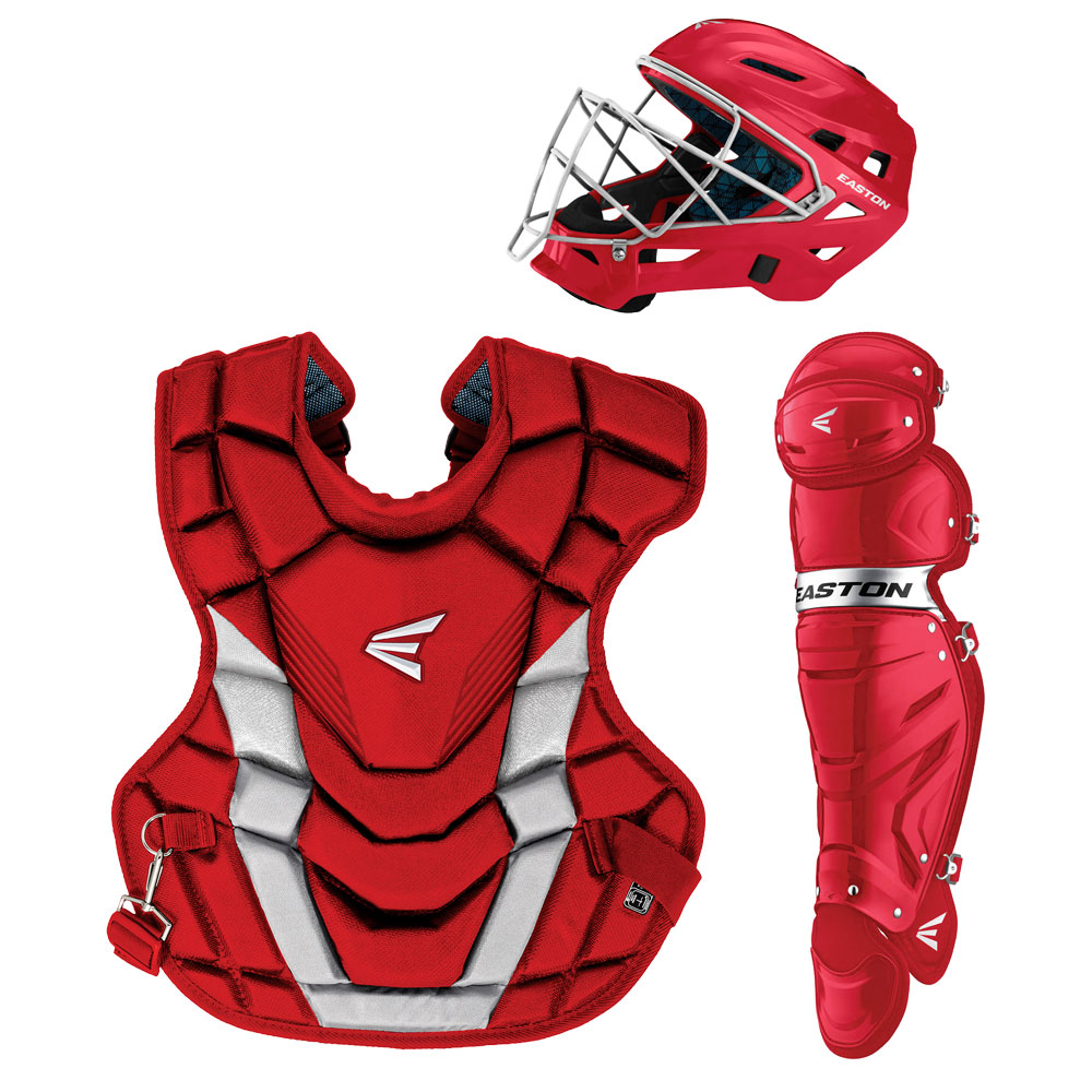 The Easton Gametime Series intermediate catcher’s set comes in a 3-piece box is recommended for players ages 13-15