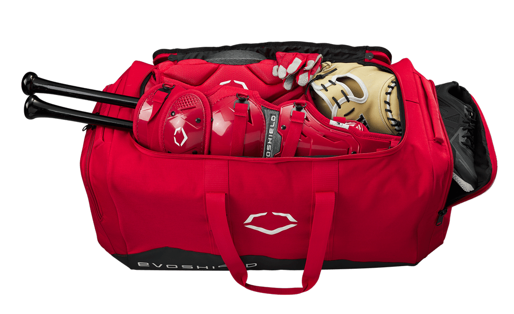 Ideal for players on the move to tournaments every weekend, the EvoShield Game Day Duffle makes it easy to take your equipment across the country. Secure your batting helmet, fielding gloves, and additional gear in the main compartment, and store your shoes in the vented side pocket. With a water-resistant bottom and padded handles, this duffle can handle tough trips to new locations all year. Identify your duffle at baggage claim with a clear luggage ID window, then grab the two center handles and make your way to the next big game.