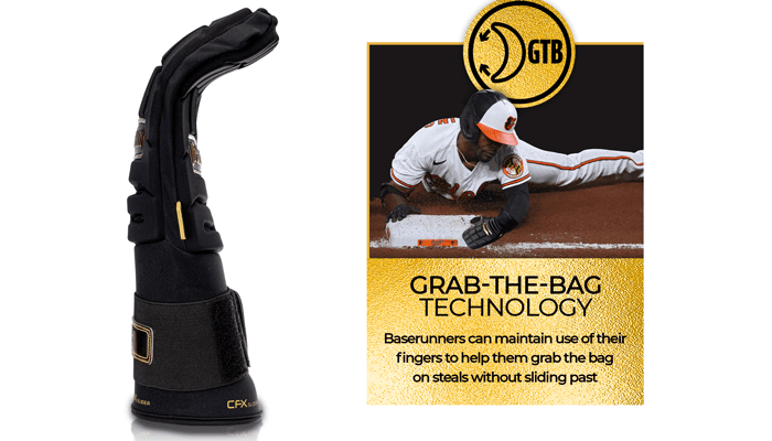 The soft, lightweight protective material has a responsive feel so baserunners can maintain the use of their fingers to help them grab the bag on steals without sliding past