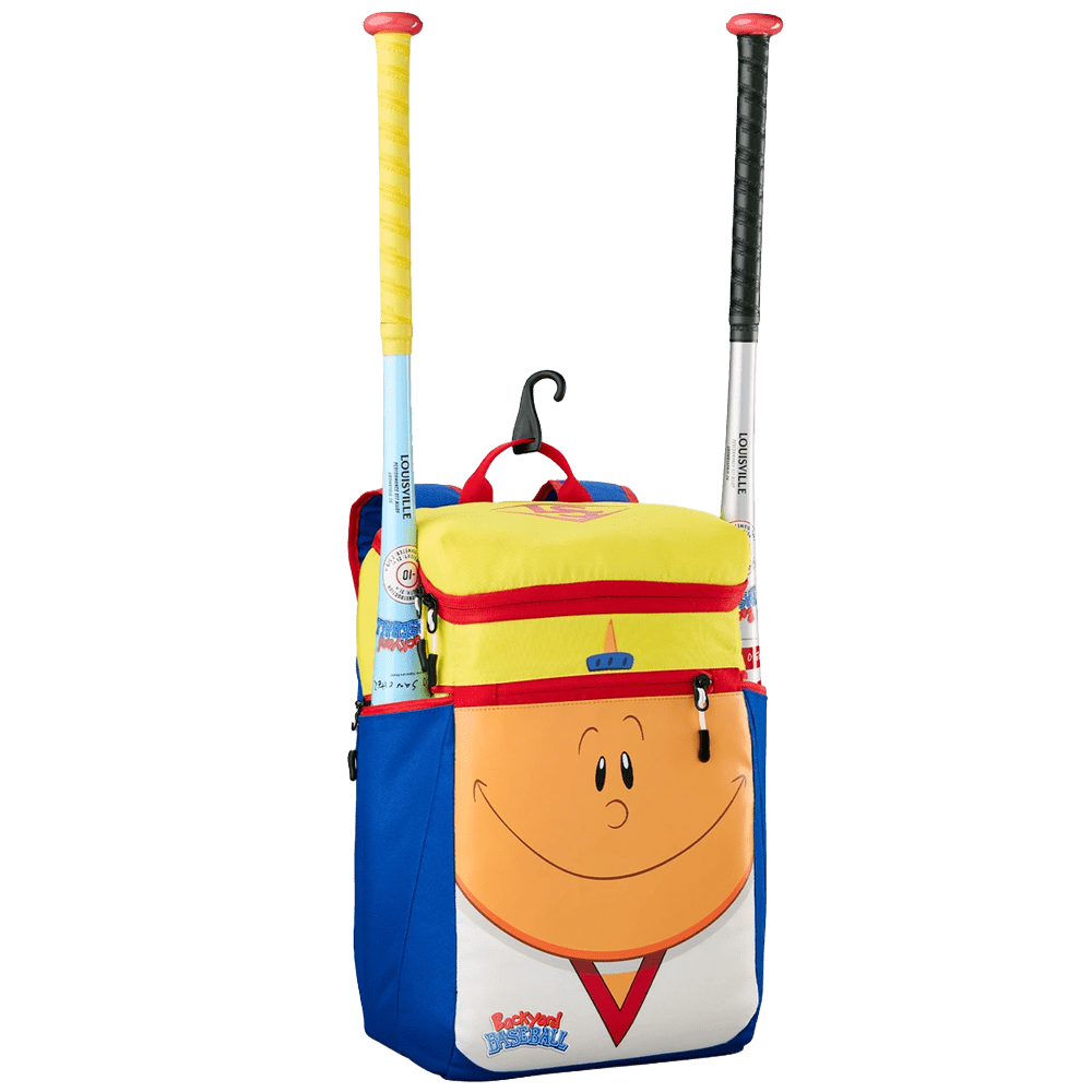 Take your gear on the go with the Backyard Baseball Pablo Sanchez Stick Pack from Louisville Slugger. The Sandlot Slugger and Backyard Baseball MVP, with his signature backwards ballcap, appears prominently on the bag. A zippered main compartment fits your T-Ball and youth player’s fielding glove, batting helmet and cleats. A pair of zippered bat sleeves can carry up to two bats or function as water bottle pockets. Secure your bag to the dugout fence using the integrated hook for easy access during practices or games.