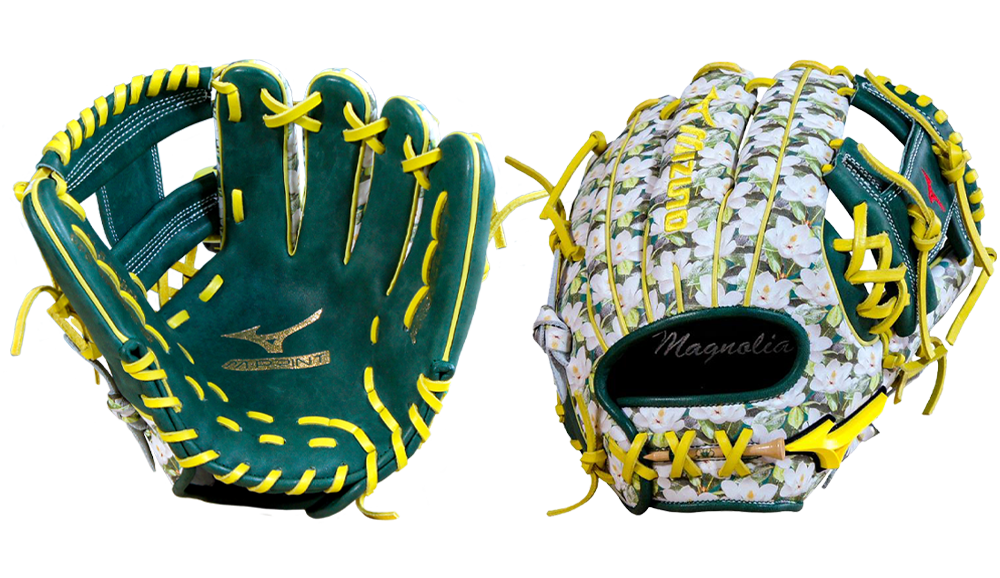 Celebrate the southern tradition unlike any other! This golf-themed Pro Select glove is ready for Spring. Hit the field with a limited edition M-Print Pro Select glove that will make all the plays and keep you under par. Mizuno's Steer-Hot leather comes in this Magnolia pattern that is unique and bright.