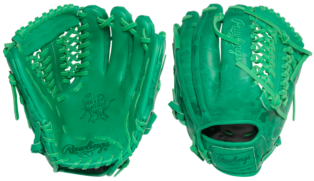 Rawlings Heart of the Hide Color Sync 10 Kelly Green Camo 11.75" Glove delivers a bold, monochromatic look with subtle texture built into every detail. Featuring an all kelly green design, this glove brings a confident, no-nonsense style to the field that stands out without needing extra contrast. What sets this glove apart is its embossed camo pattern across the leather, adding depth and dimension while maintaining a clean, uniform appearance. The tonal camo design blends seamlessly into the glove, creating a layered look that feels both modern and understated. Built for versatile performance, this glove features 206 pattern with a Trap-Eze web, offering a deeper pocket that’s ideal for players moving between infield and outfield or those who prefer added control on every play. It’s designed to give you a secure feel while still allowing for smooth transfers and consistent fielding. Crafted from Rawlings’ world-renowned Heart of the Hide leather, this glove delivers pro-level durability and structure, forming the perfect pocket over time. It’s the same trusted material used by elite players, giving you reliable feel and performance every time you take the field.