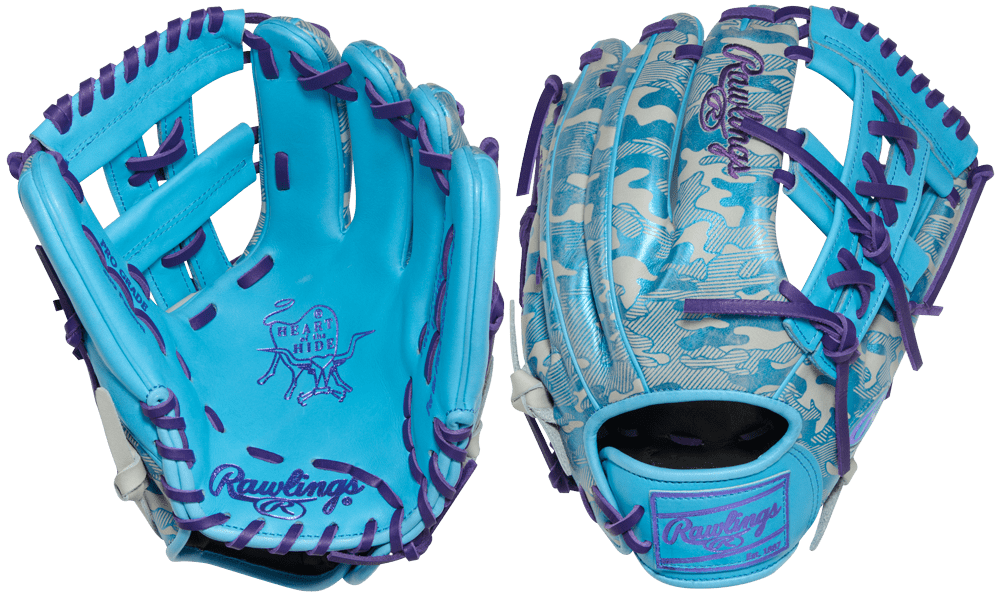 • Features a columbia blue and metallic purple leather Rawlings patch