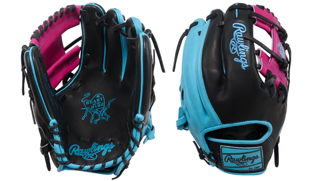 Step onto the dirt with throwback swagger in the Rawlings Heart of the Hide Spring Break infield glove. Featuring a bold Black shell with Columbia Blue and Berry accents, this glove channels classic 90s highlight-reel energy with a modern edge — made for players who want their style to pop as much as their defense. Crafted from Rawlings’ world-renowned Heart of the Hide steerhide leather, this glove delivers the premium feel, durability, and structure trusted by elite infielders. The 11.5-Inch size, 200 pattern, and Pro I Web design create a quick, responsive pocket built for smooth transfers, fast hands, and confident control on every ground ball. A padded thumb sleeve and comfortable wrist lining add support and game-ready comfort through long practices and big-game moments. Part of the Spring Break Collection, this glove blends pro-level craftsmanship with bold, retro-inspired attitude for players who play fast, compete hard, and aren’t afraid to stand out. Lock it in, make every play count, and own the infield with the Rawlings Heart of the Hide Spring Break infield glove.