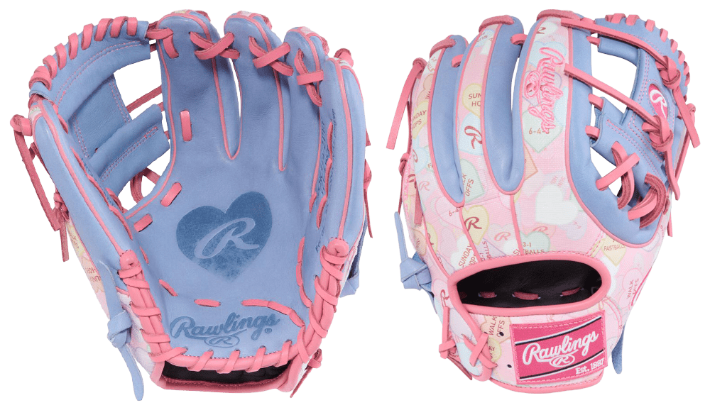 Make a statement every time the ball comes your way with the limited edition Rawlings Valentine's Day Heart of the Hide 11.5-Inch Infield Glove, built for infielders who demand precision, confidence, and premium feel. This eye-popping design features our new periwinkle colorway with a candy heart UV print back, giving the glove a custom look that stands out without sacrificing performance.