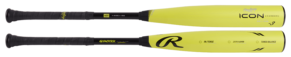 The Glowstick is back and hotter than ever! This limited-edition run of the Icon BBCOR -- ranked as the hottest composite BBCOR bat in the game -- pays homage to the 2017 Rawlings Quatro Pro, known as the "Glowstick" thanks to its highlighter-yellow design and ultra-hot exit velos. This small batch of specially designed bats feature everything that's made the Icon one of the most dominant bats in high school and college ball.