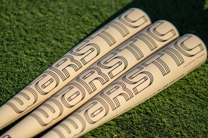 On the Warstripe side of the bat, a glossy patch offsets the matte finish meant to mimic the Wartip stain