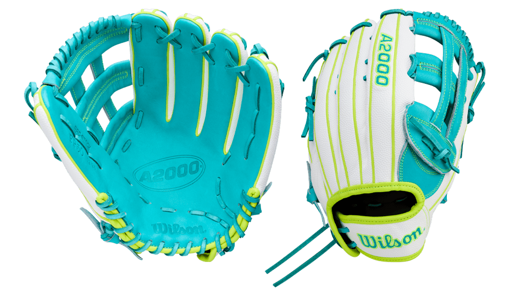 Extend for fly balls and line drives across the outfield grass with the Spring 2026 A2000 FP50SS, a 12.25” outfield fastpitch softball glove designed for the optimal combination of size and control. Teal Pro Stock leather offers long-lasting comfort and performance, and a sturdy Dual Post Web helps the glove hold its shape while reaching for catches at the fence. White SuperSkin™ repels moisture to keep the glove lightweight, and new Woven Bold Logos outlined in Optic Yellow offer subtle flash.