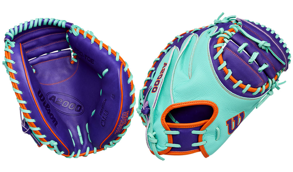 Help your pitcher paint the corners of the strike zone with the Winter 2025 A2000 CM33SS Baseball Catcher’s Mitt, designed to help create the perfect target behind home plate. The mitt’s Purple Pro Stock leather palm creates a comfortable, durable pocket, and a Half-Moon Web makes it easy to secure the ball. Seafoam SuperSkin across the back keeps the mitt lightweight, and new Woven Bold Logos add extra style to the multi-colored catcher’s mitt.