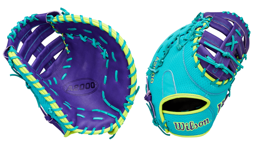 Take command of the infield with the Spring 2026 A2000 1612SS, a 12” first base mitt designed for players to easily maneuver around the bag. The mitt’s smaller 12” reach is optimized to snag hard-hit ground balls and line drives down the first base line just as well as it scoops throws from across the diamond. A Purple Pro Stock leather palm and Single Post Web offer lasting comfort and performance, while Teal SuperSnakeSkin keeps the mitt lightweight so first basemen can anchor their infield.