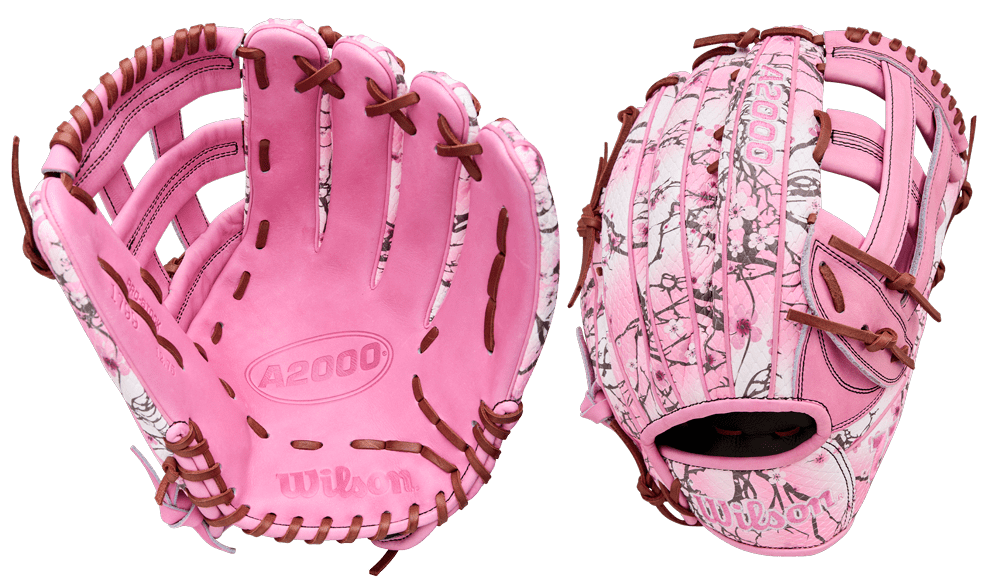 In full bloom, this custom A2000 1799SS designed by pro outfielder MJ Melendez features Pink Cherry Blossom SuperSnakeSkin for a fresh appearance all year long. Pink Pro Stock leather and a sturdy Dual Post Web keeps it shape while extending for balls in the gaps.