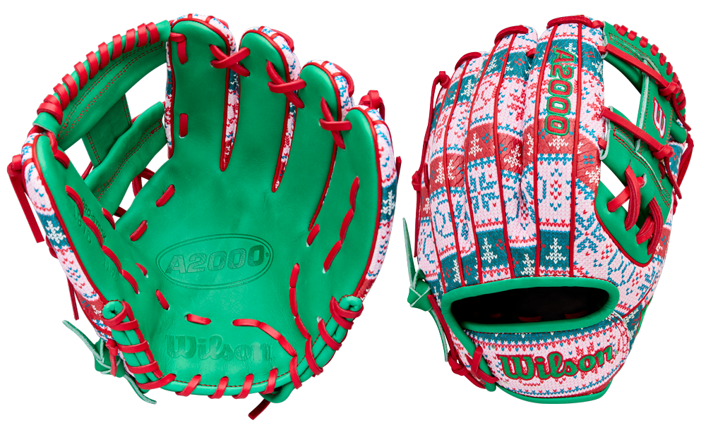 Bring cheer to the infield with this custom A2000 1975SS, featuring off-white SuperSnakeSkin decorated in holiday scenes to match your favorite sweater for the most wonderful time of the year. The 11.75” glove has a deep pocket to give middle infielders and third basemen full control of hard-hit balls.